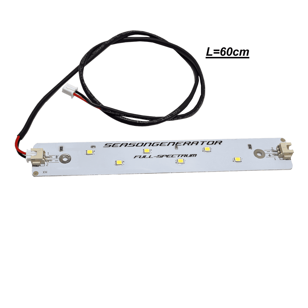 Barretta composta da 6 LED di colore bianco 5700K con resa cromatica superiore al 95% per La simulazione della luce del giorno. L’utilizzo combinato con i programmatori Season Generator permette il controllo dell’intensità luminosa e la regolazione delle ore di luce